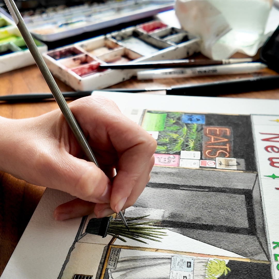 Ana Gallego is a Spanish-born watercolour architectural artist based in South London.