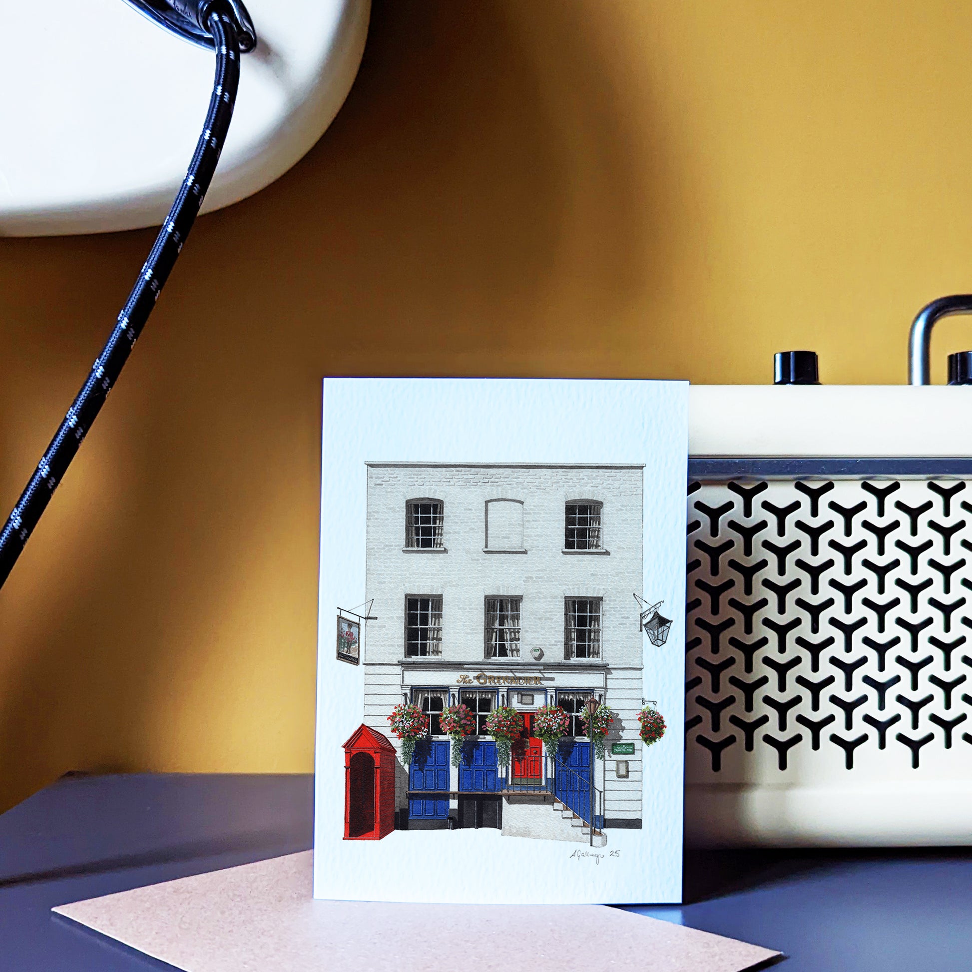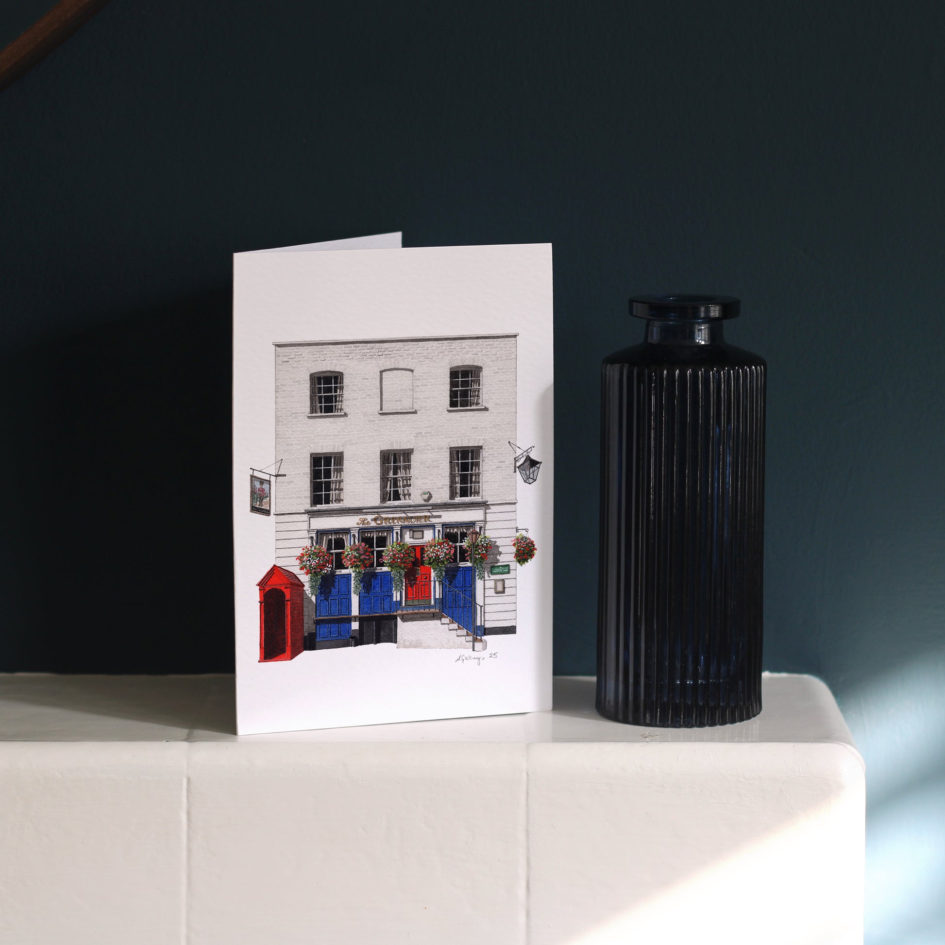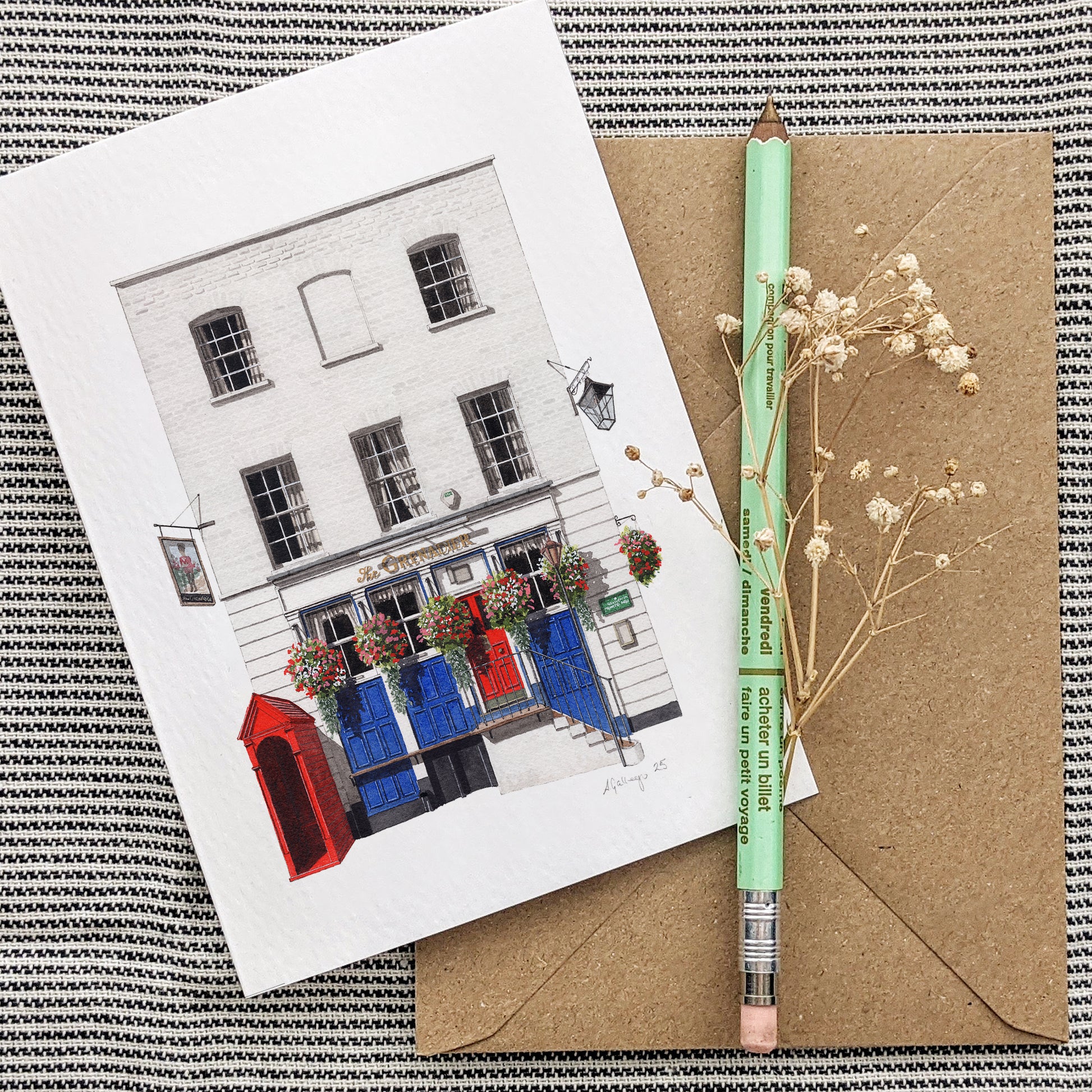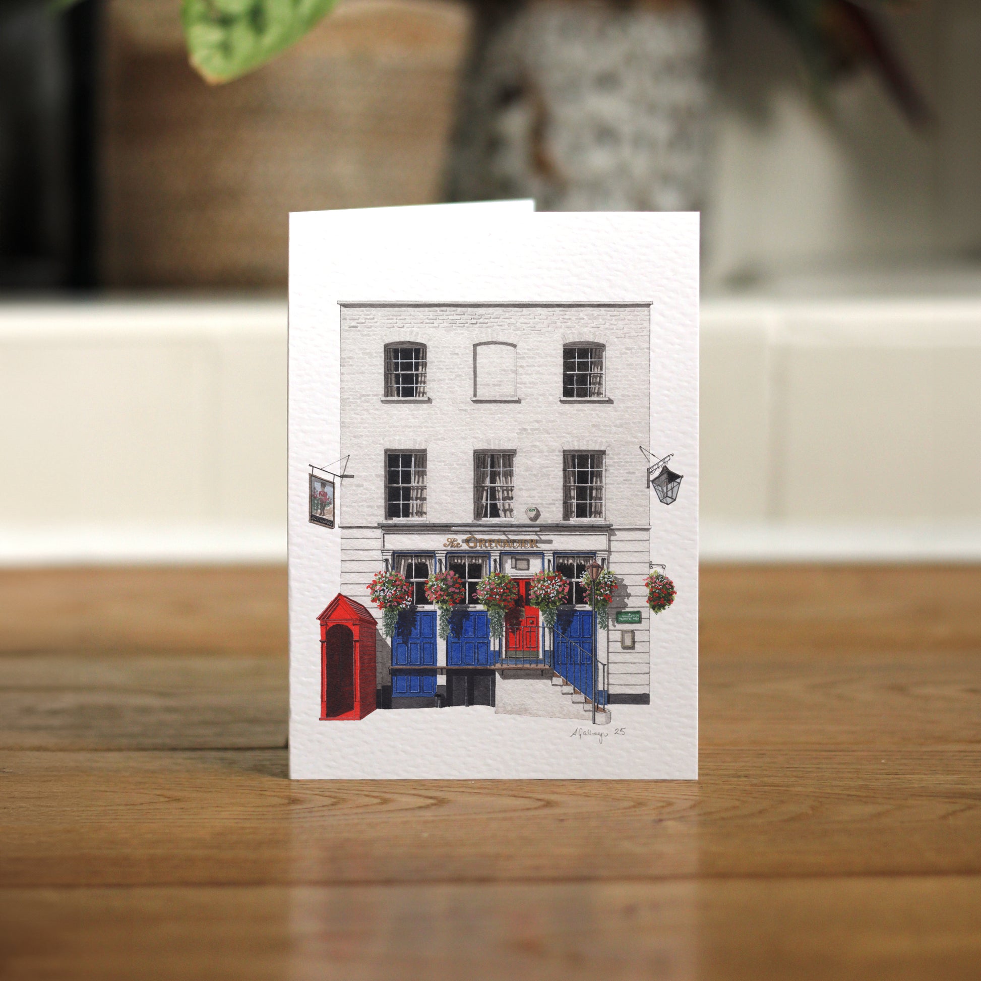 This is a greeting card of a watercolour illustration painted by me of the historic The Grenadier pub in Belgravia / Knightsbridge, London.