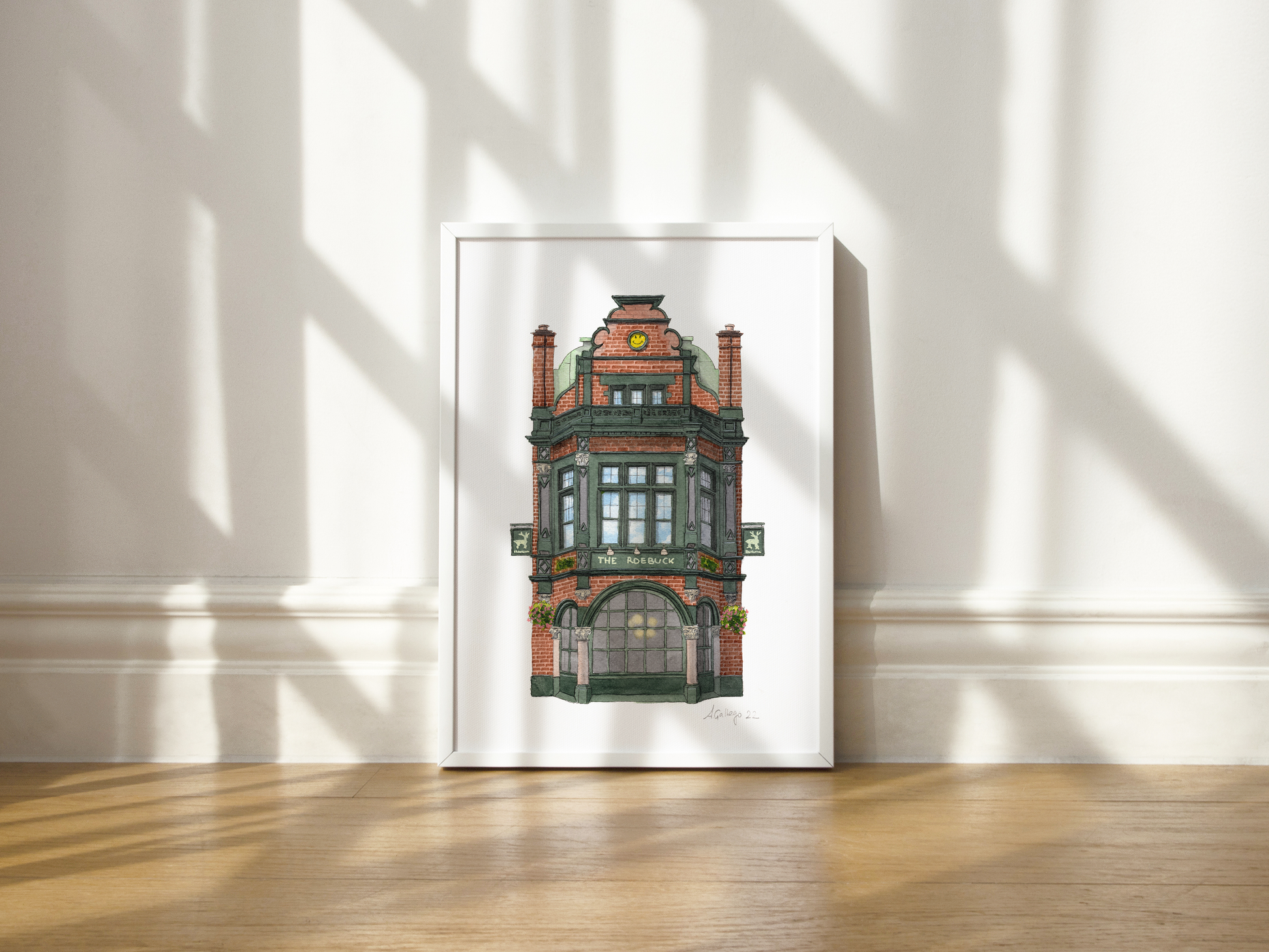 This is a Giclée Print of a watercolour illustration painted by me of the historic The Roebuck pub in Borough, London Bridge, London.