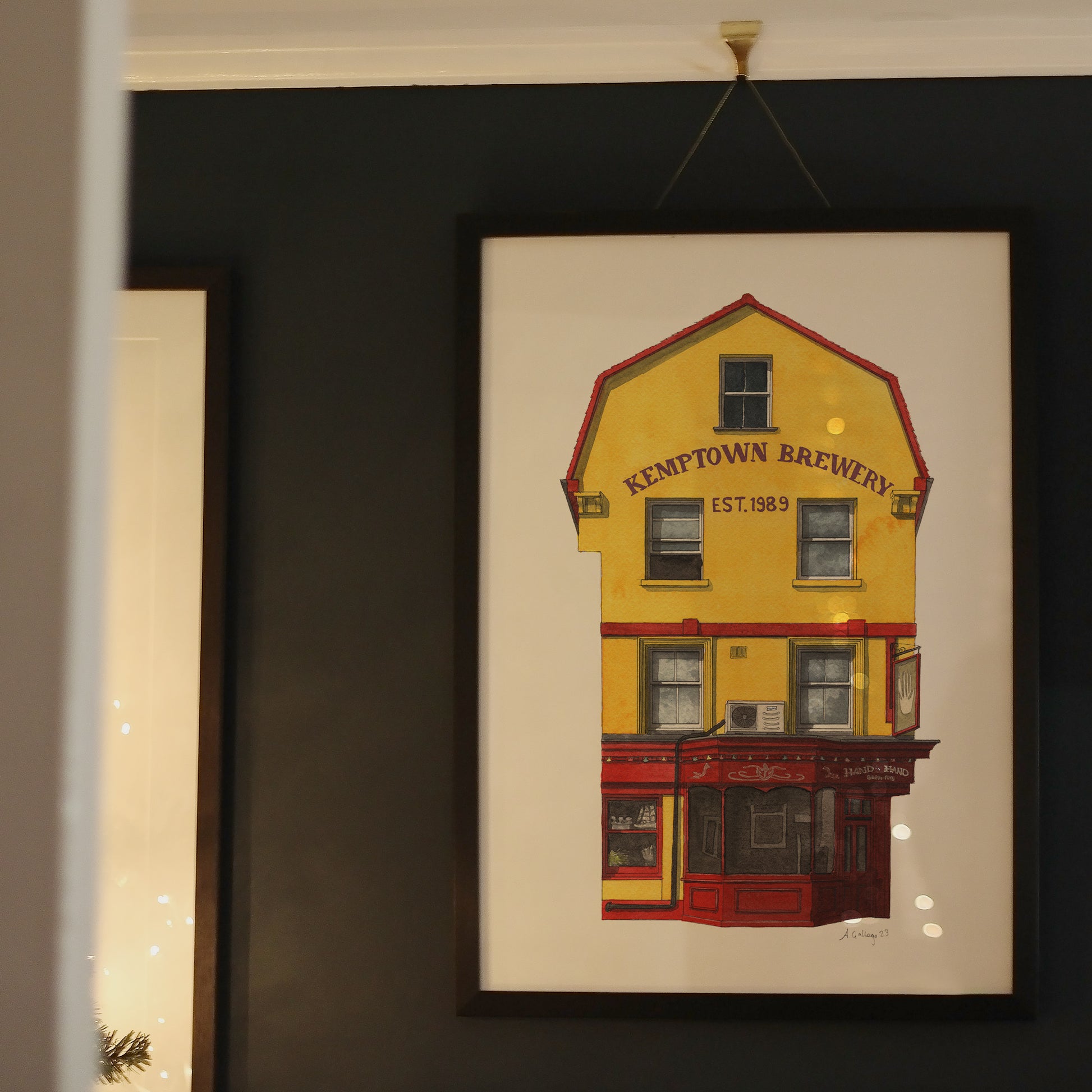 This is a Giclée Print of a watercolour illustration painted by me of the iconic The Hand in Hand pub, part of Kemptown Brewery in Kemptown, Brighton.