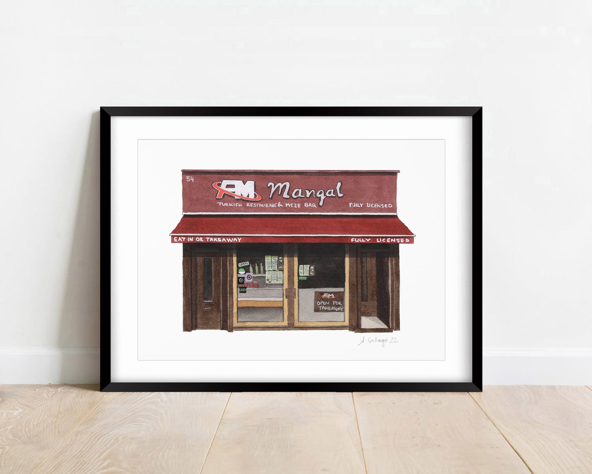 This is a Giclée Print of a watercolour illustration painted by me of the very loved FM Mangal restaurant in Camberwell, South London.