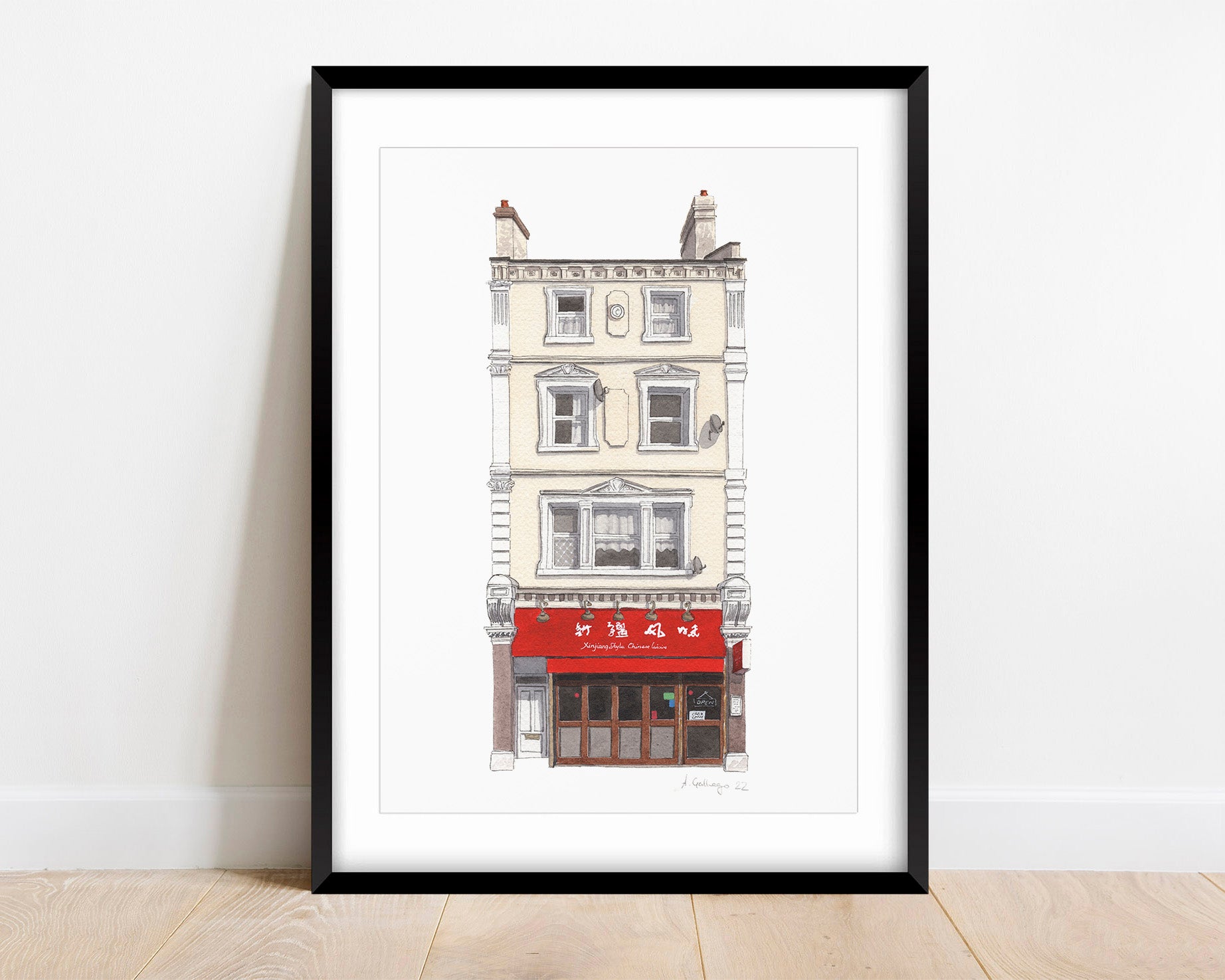 This is a Giclée Print of a watercolour illustration painted by me of the very loved Silk road restaurant in Camberwell, South London.