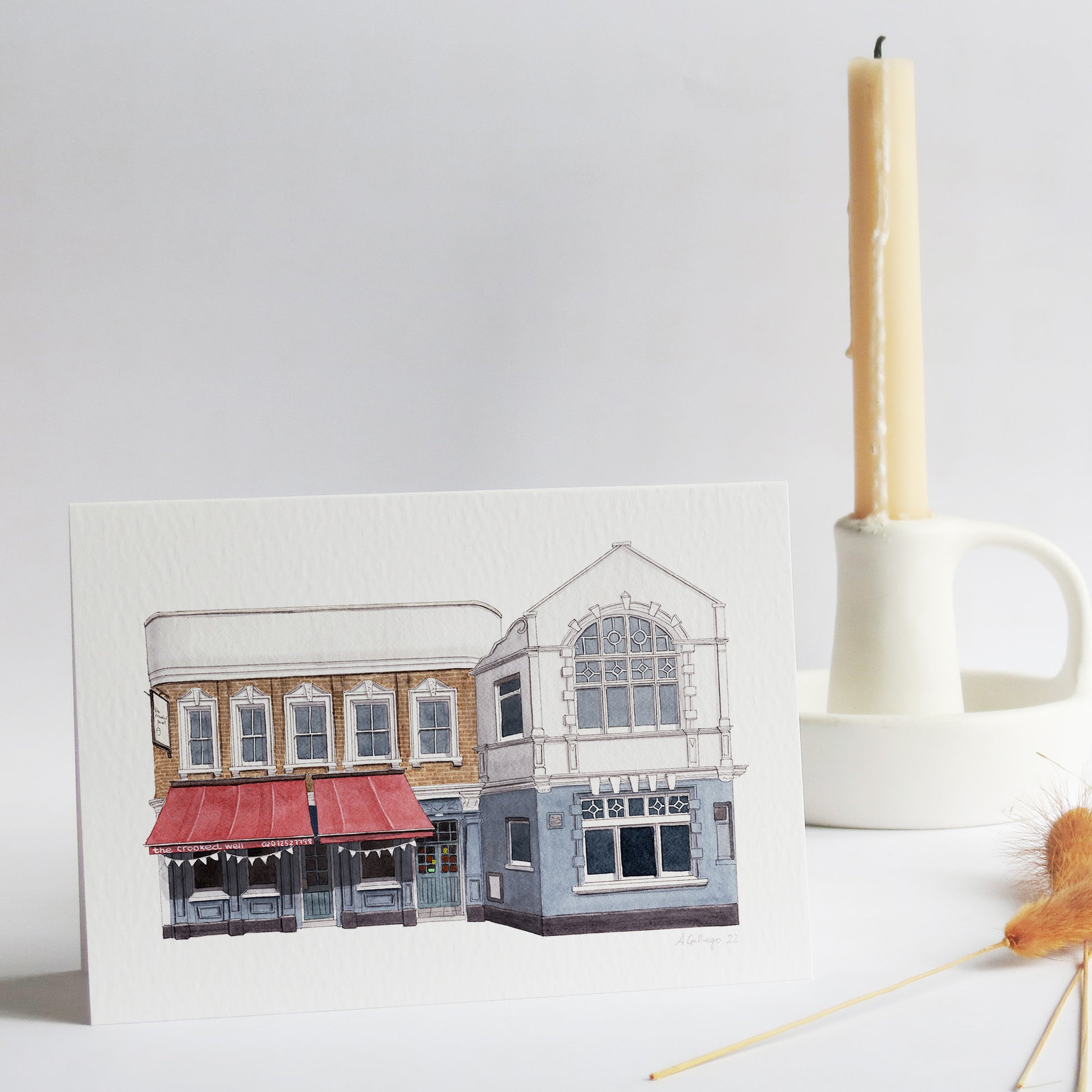 This is a greeting card of a watercolour illustration painted by me of The Crooked Well pub in Camberwell / Denmark Hill, South London