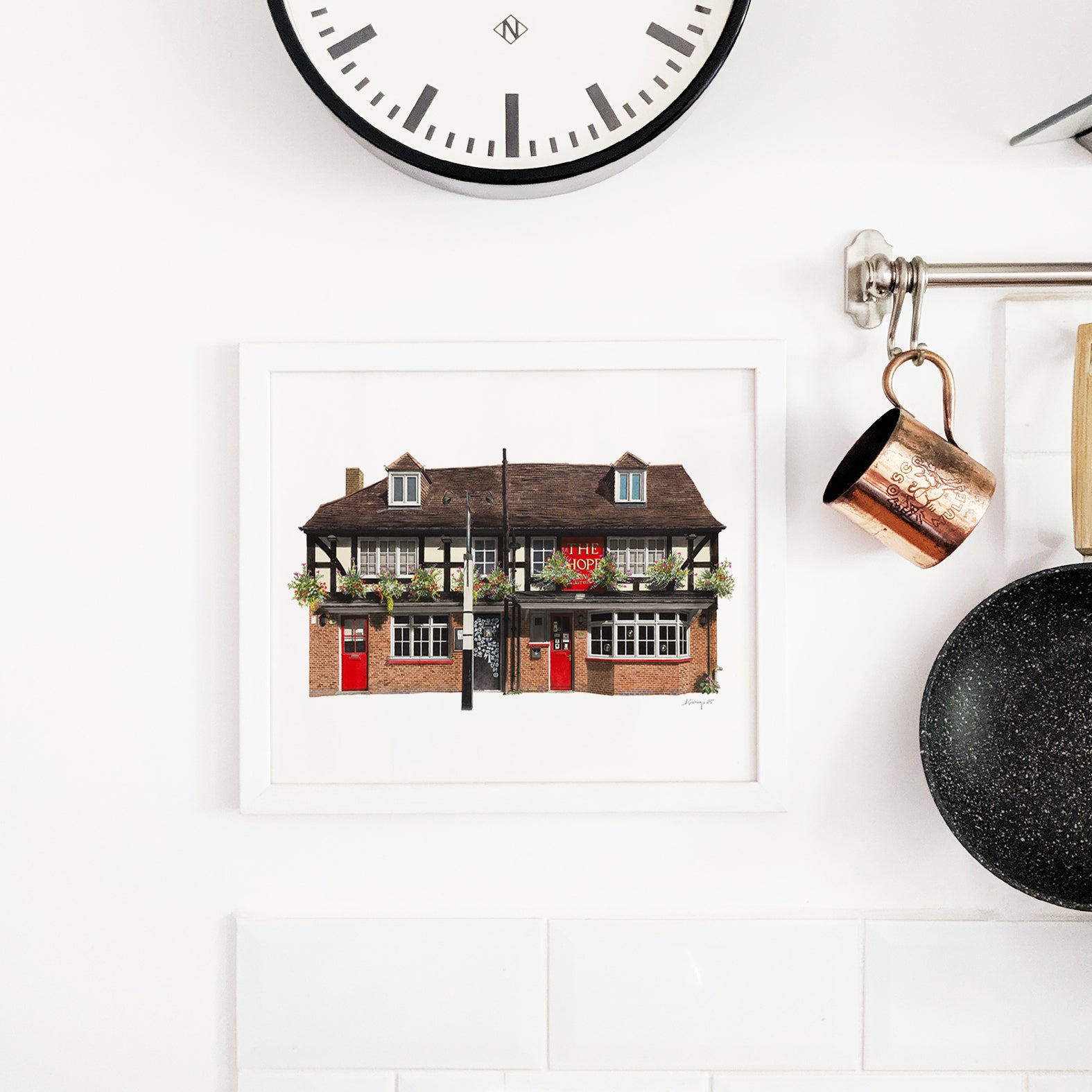 This is a Giclée Print of a watercolour illustration painted by me of The Hope in Carshalton, Sutton, South London.