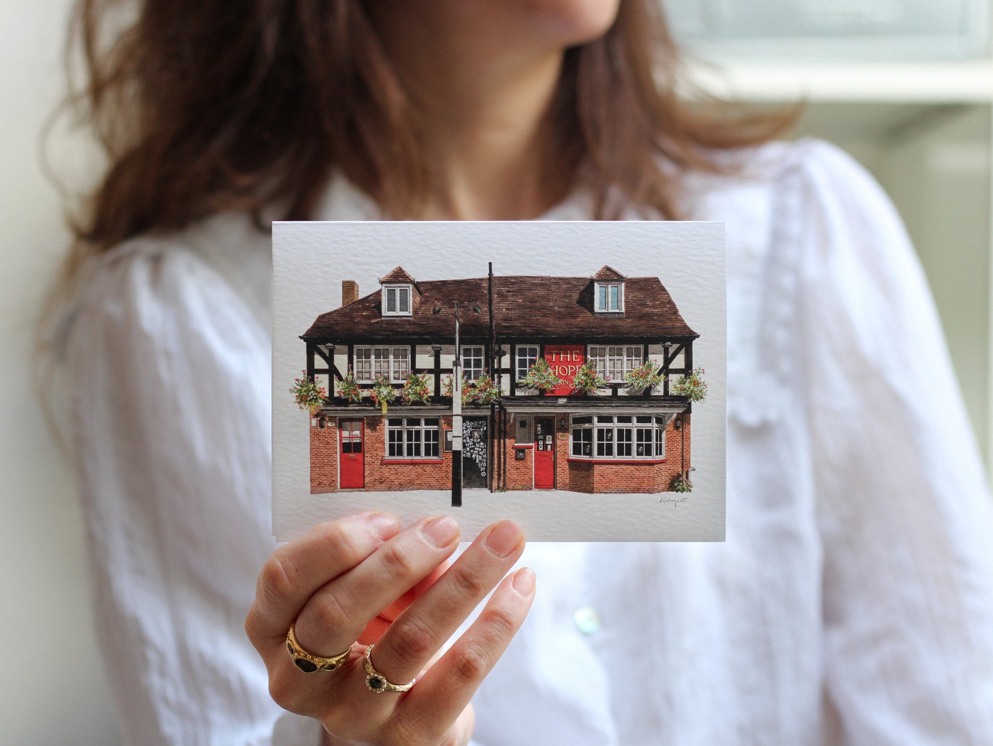 This is a greeting card of a watercolour illustration painted by me of The Hope in Carshalton, Sutton, South London.