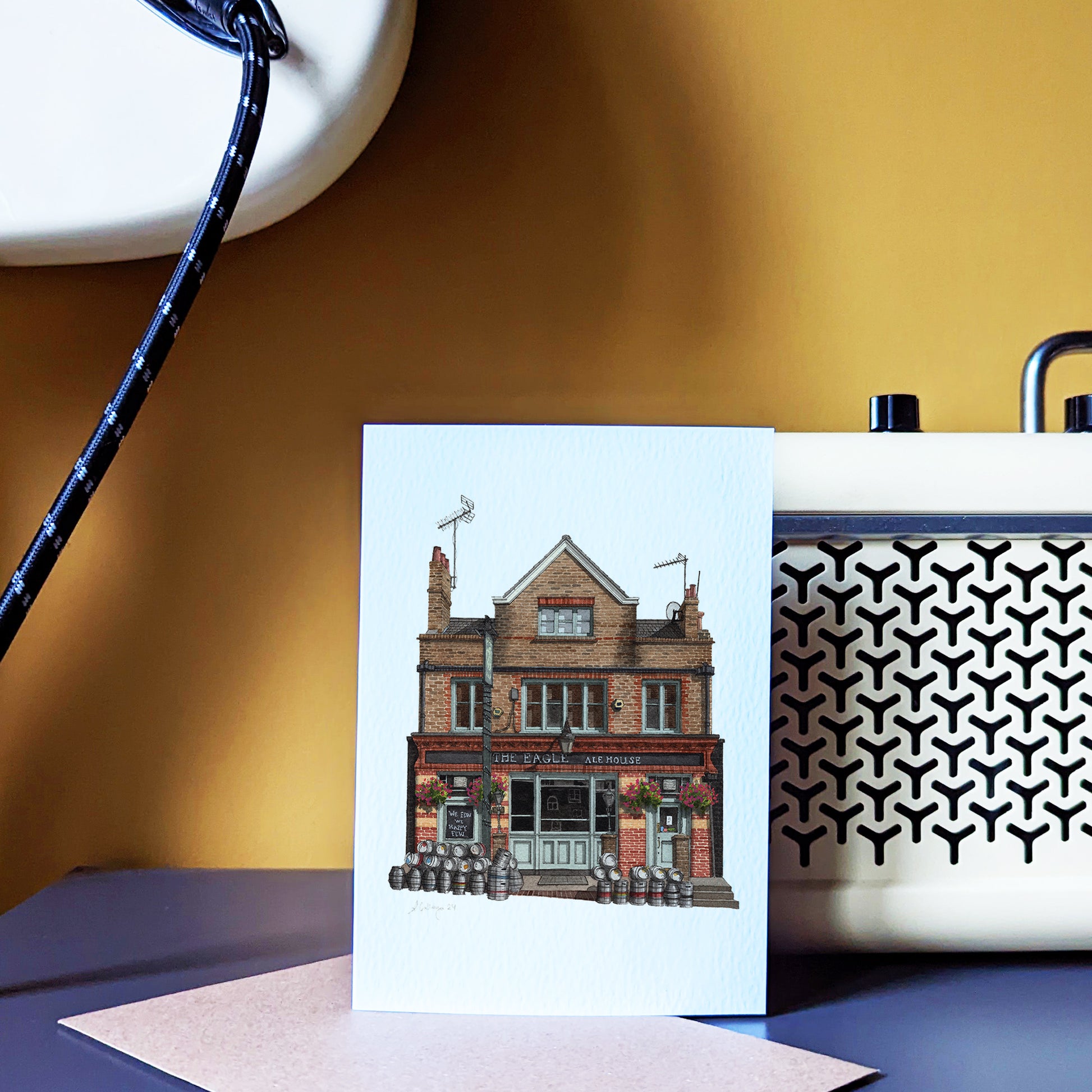 This is a greeting card of a watercolour illustration painted by me of The Eagle Ale House in Clapham, South London