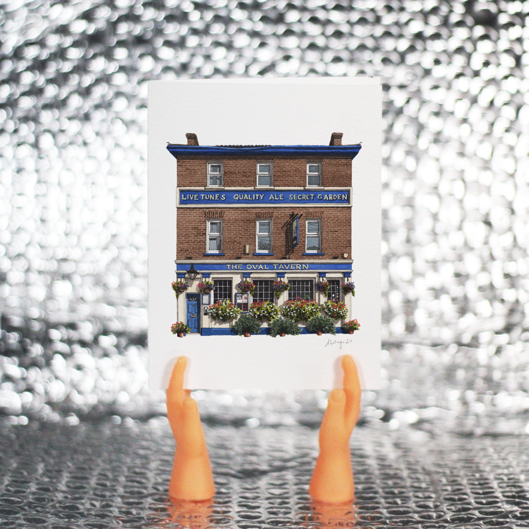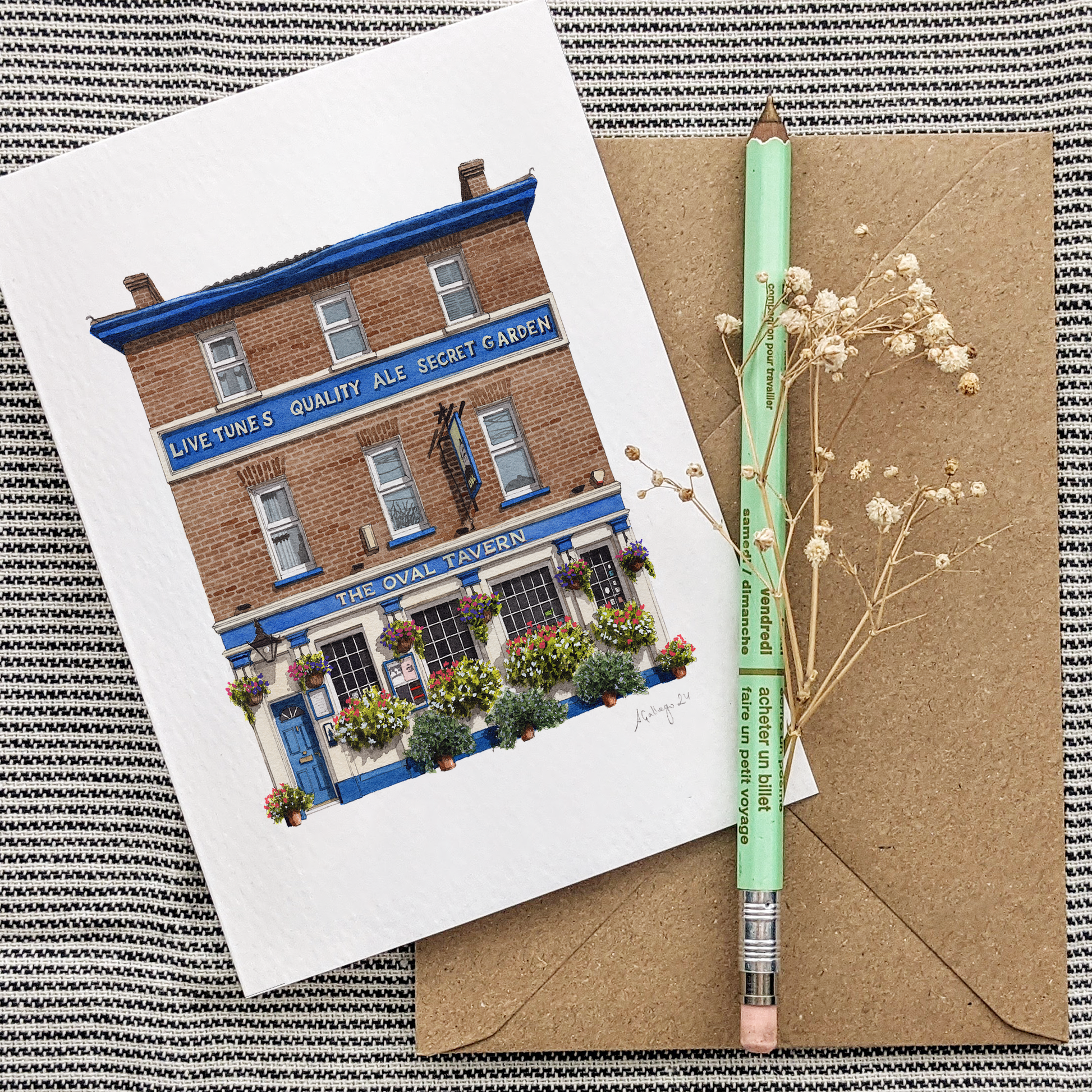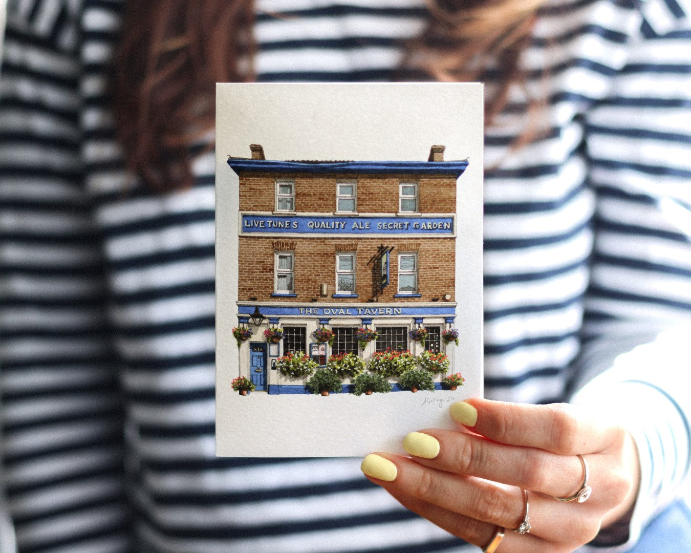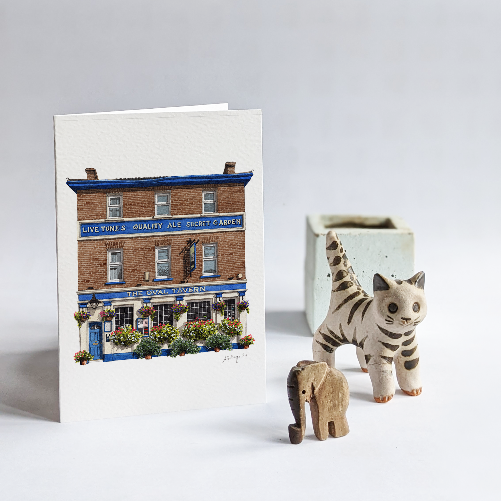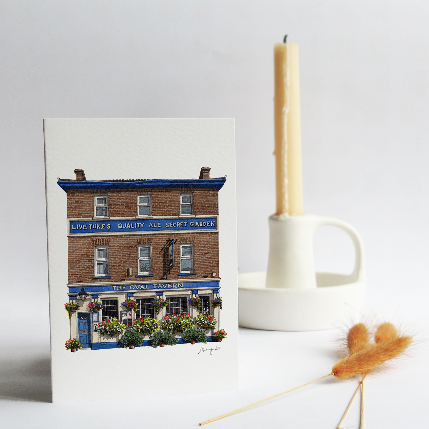 This is a greeting card of a watercolour illustration painted by me of The Oval Tavern in Croydon, South London