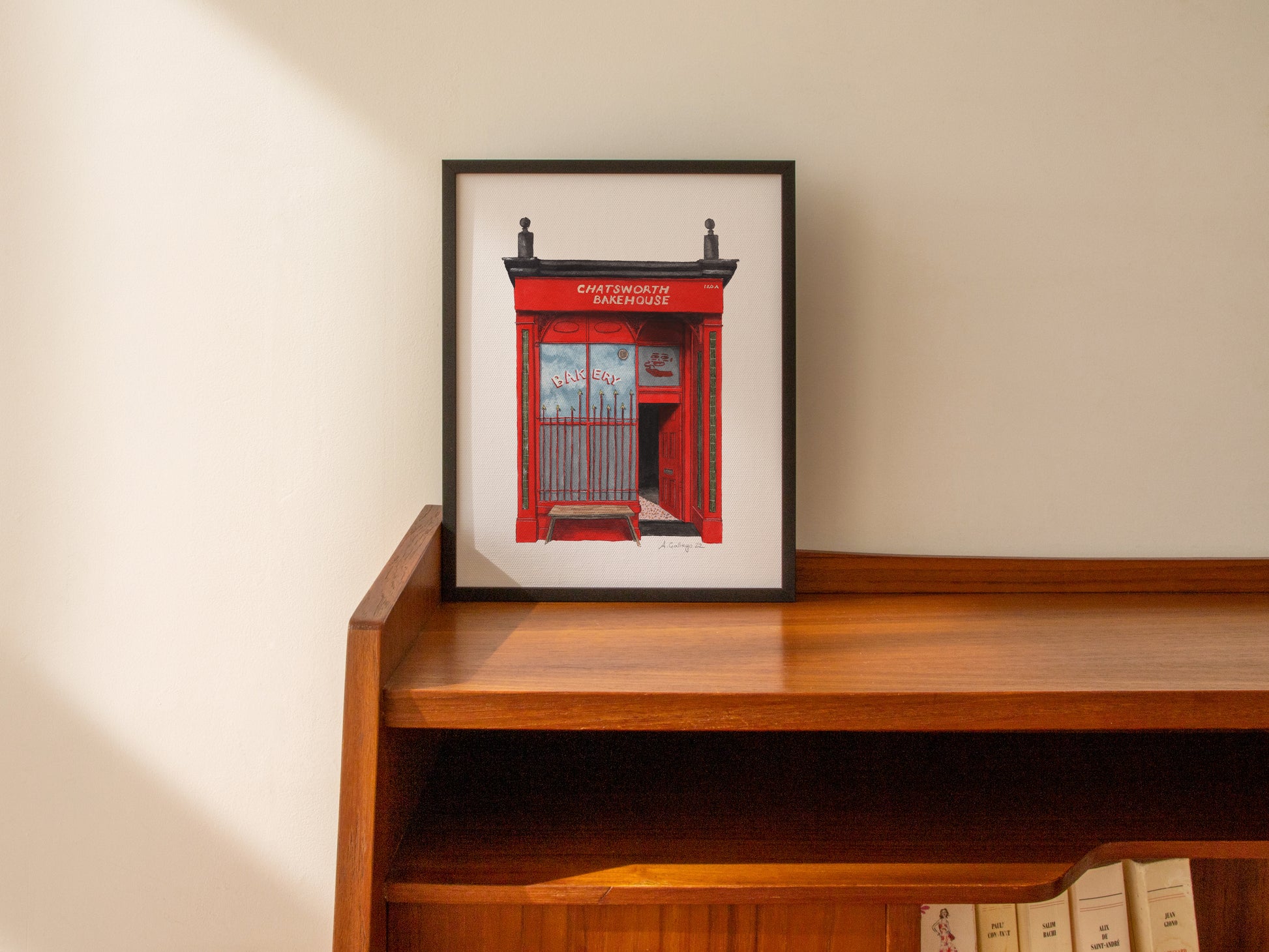 This is a Giclée Print of a watercolour illustration painted by me of the nano bakery Chatsworth Bakehouse in Crystal Palace / Anerley, South London.