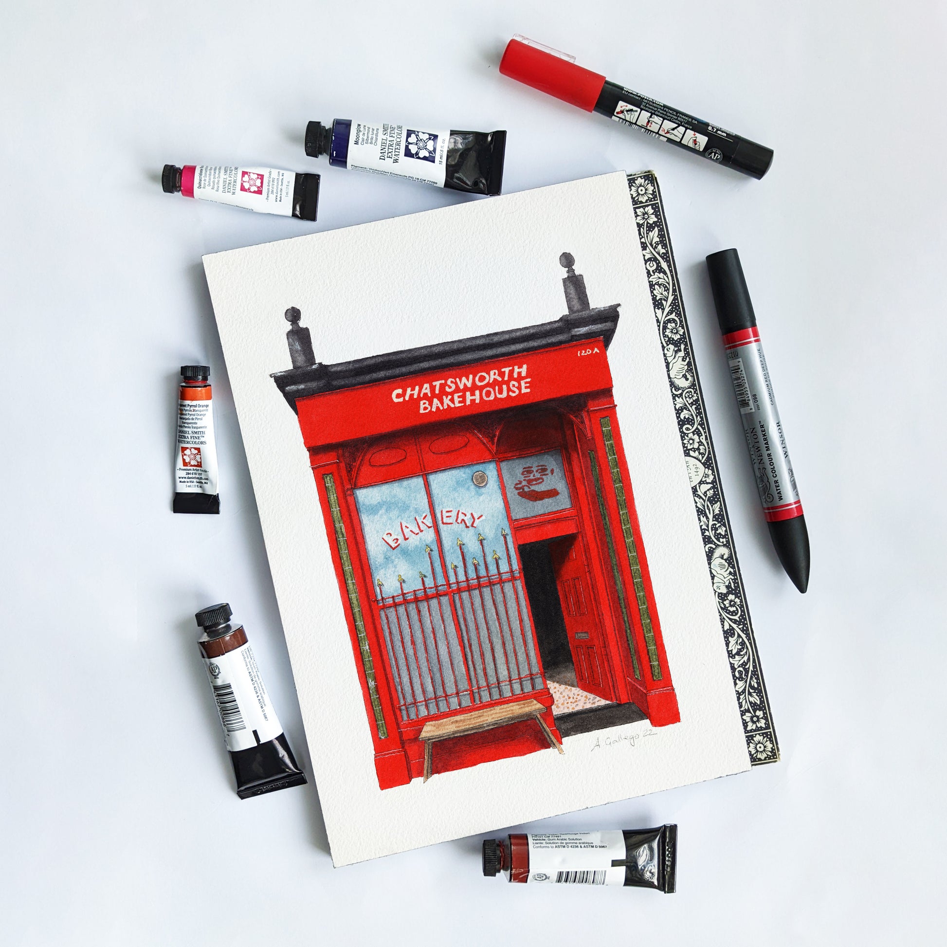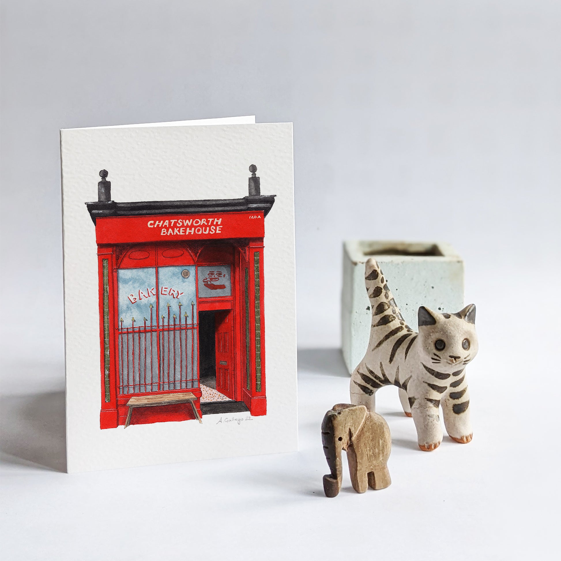 This is a greeting card of a watercolour illustration painted by me of the nano bakery Chatsworth Bakehouse in Crystal Palace / Anerley, South London