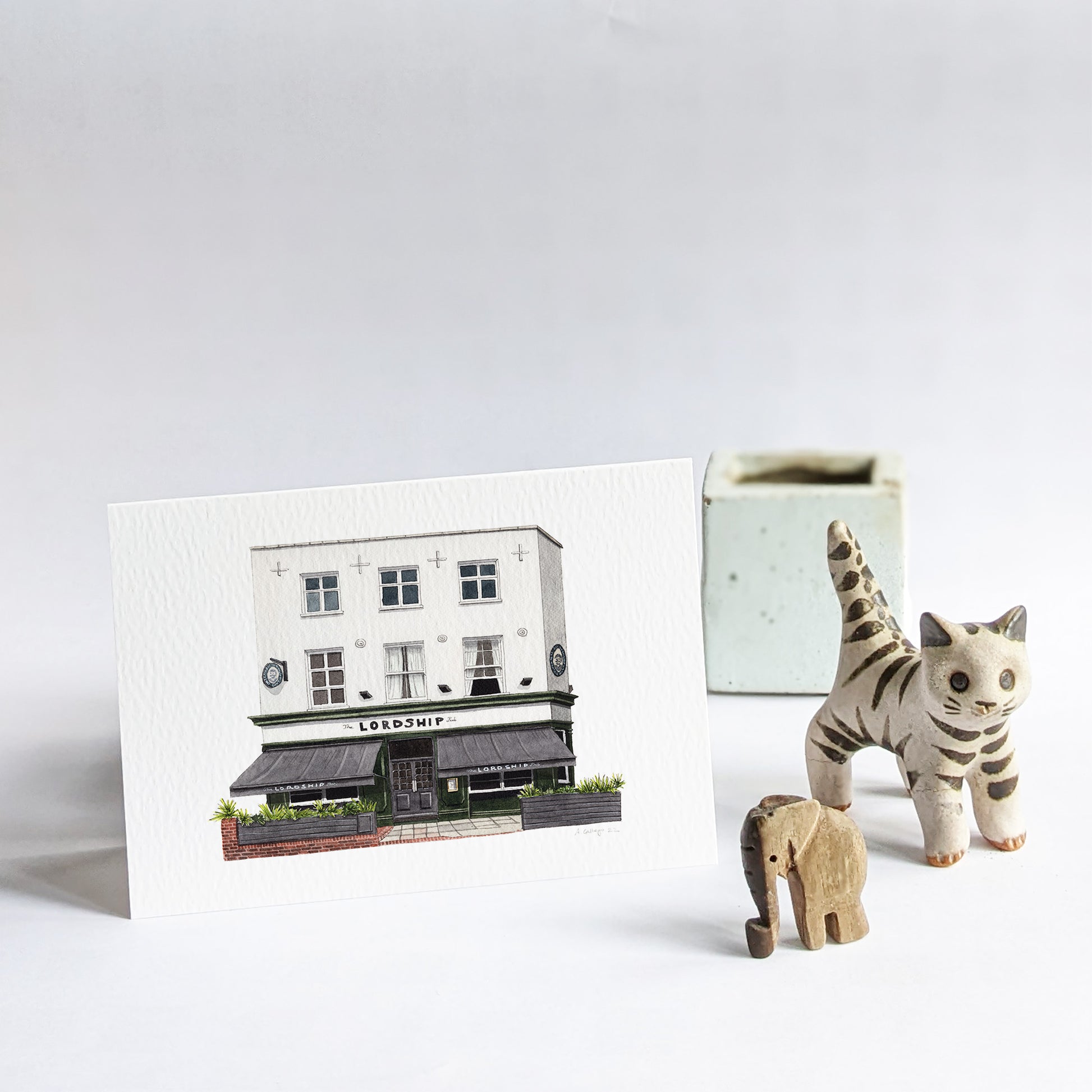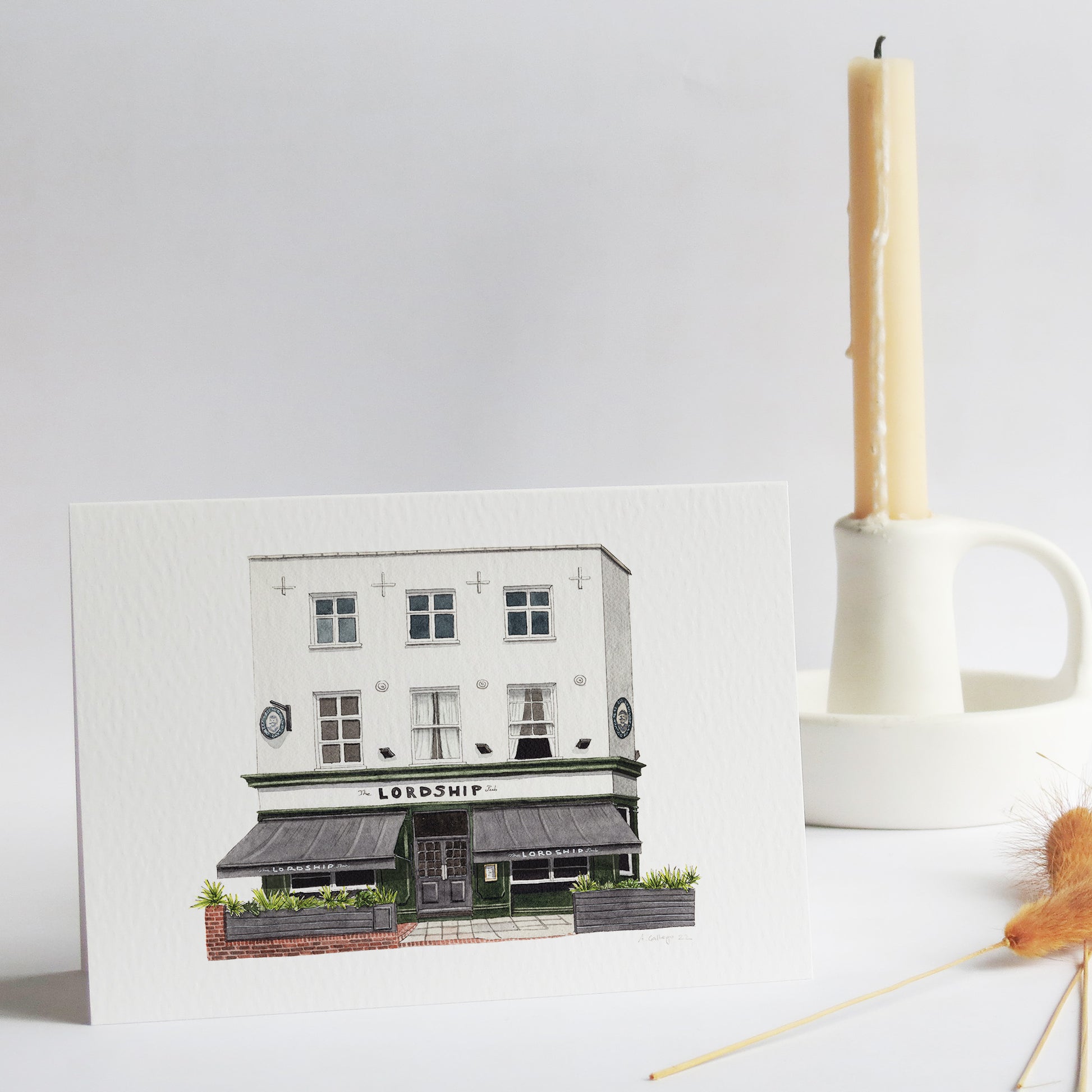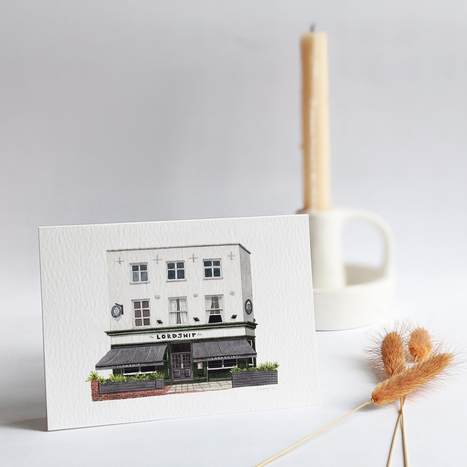 This is a greeting card of a watercolour illustration painted by me of the historic The Lordship pub in Lordship Lane in East Dulwich, South London