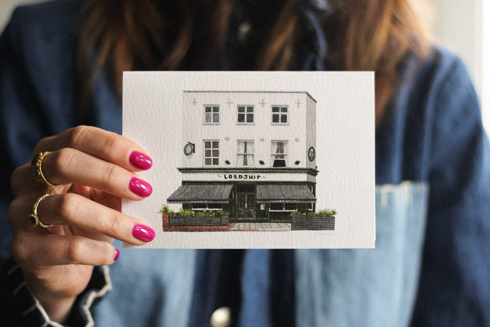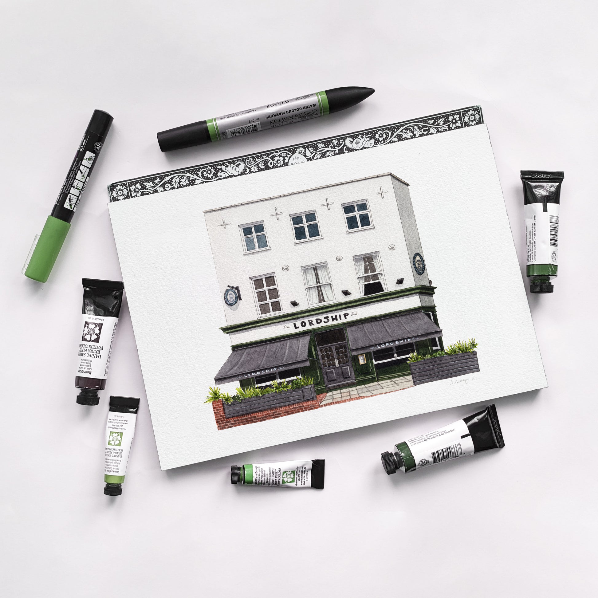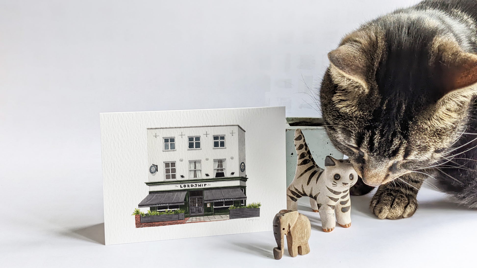 This is a greeting card of a watercolour illustration painted by me of the historic The Lordship pub in Lordship Lane in East Dulwich, South London