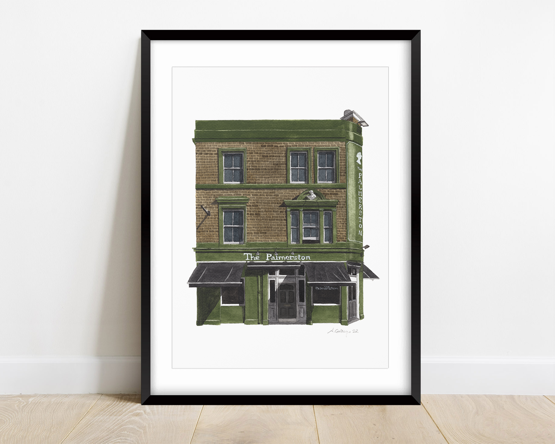 This is a Giclée Print of a watercolour illustration painted by me of the historic The Palmerston in Lordship lane in East Dulwich, South London