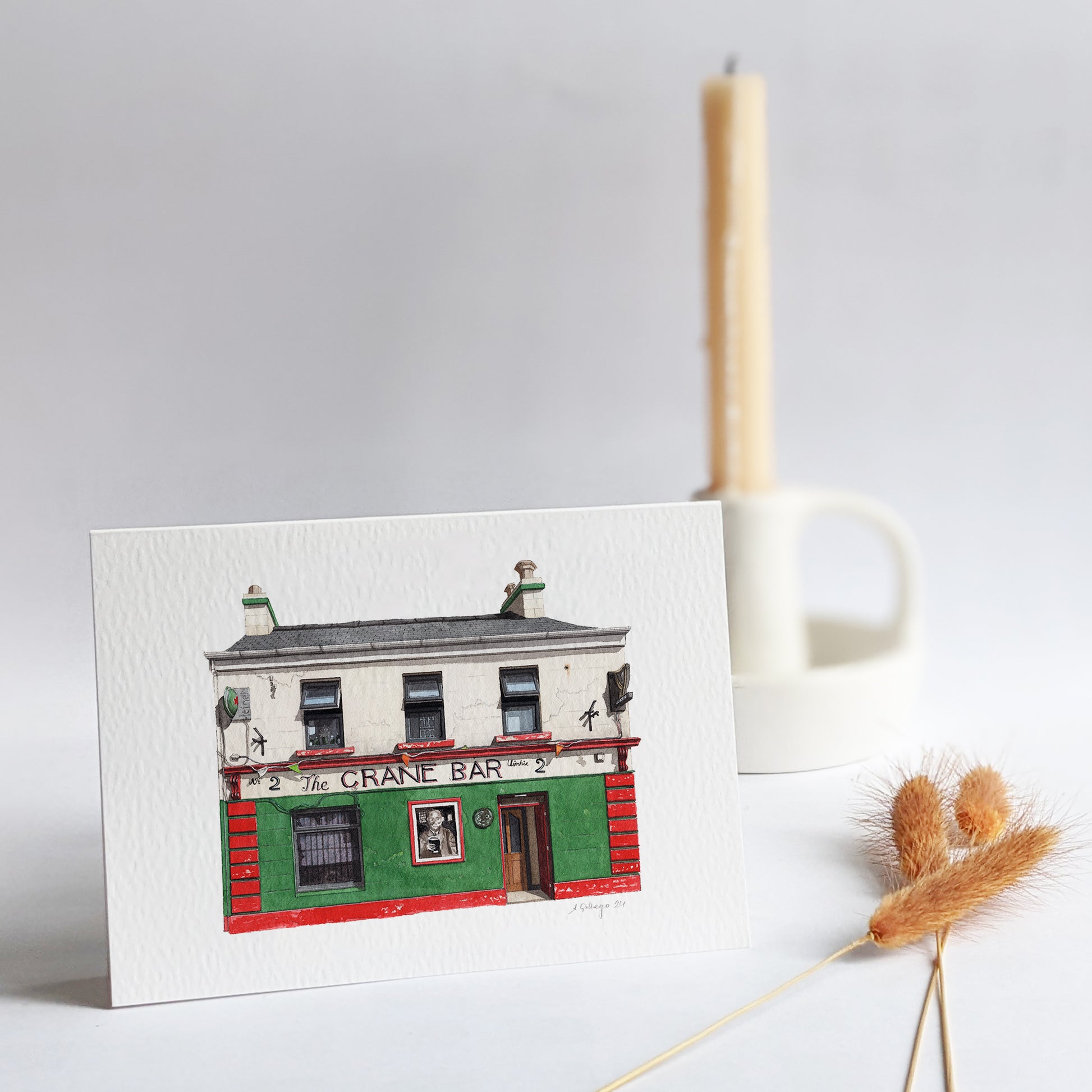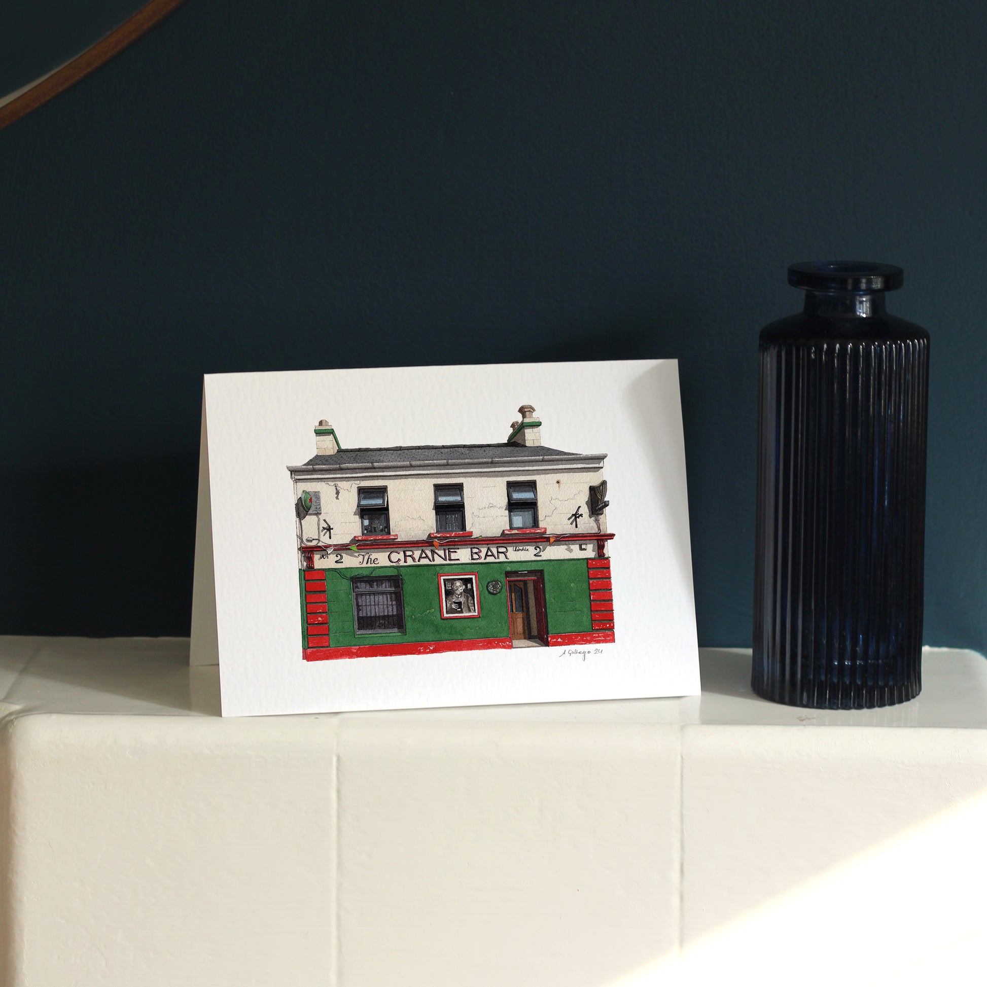 This is a greeting card of a watercolour illustration painted by me of The Crane Bar in Galway City, Ireland.