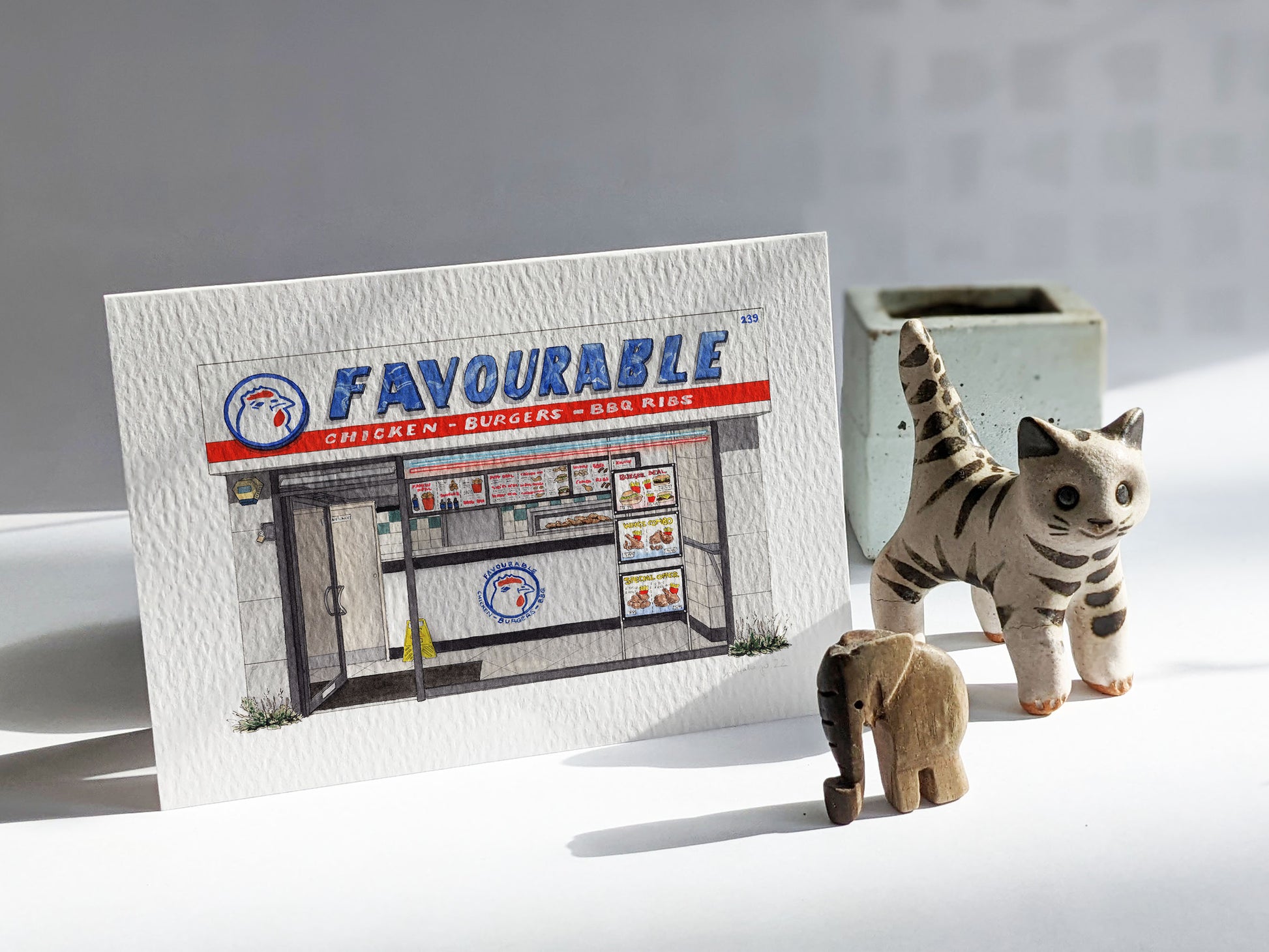 This is a greeting card of a watercolour illustration painted by me of Favourable chicken, a fried chicken shop in Gipsy Hill, South East London