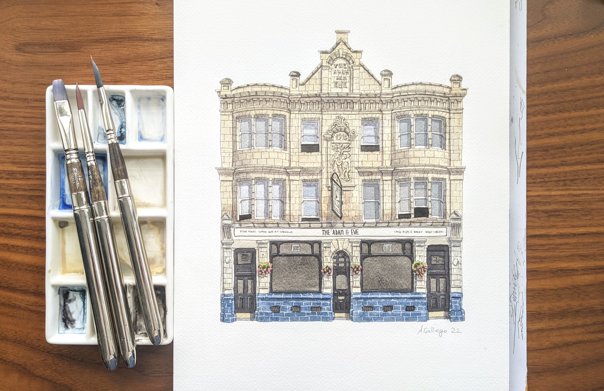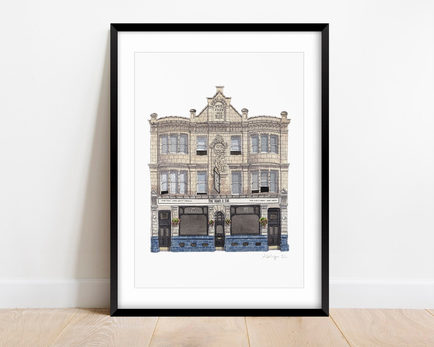 This is a Giclée Print of a watercolour illustration painted by me of the historic Adam & Eve pub in Homerton (Hackney), in East London.