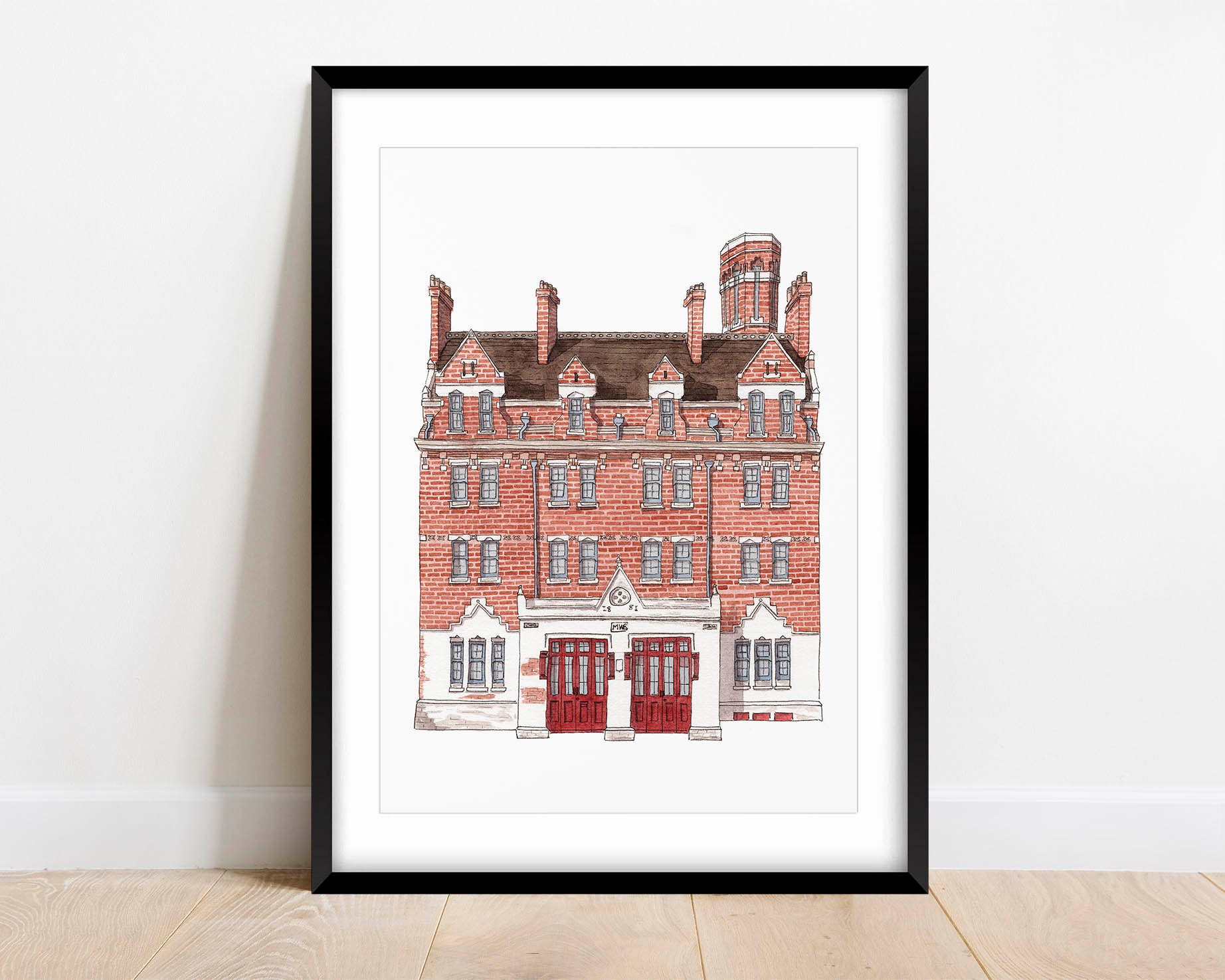 This is a Giclée Print of a watercolour illustration painted by me of the historic Old Fire Station in West Norwood / Tulse Hill (South London), now South London Theatre