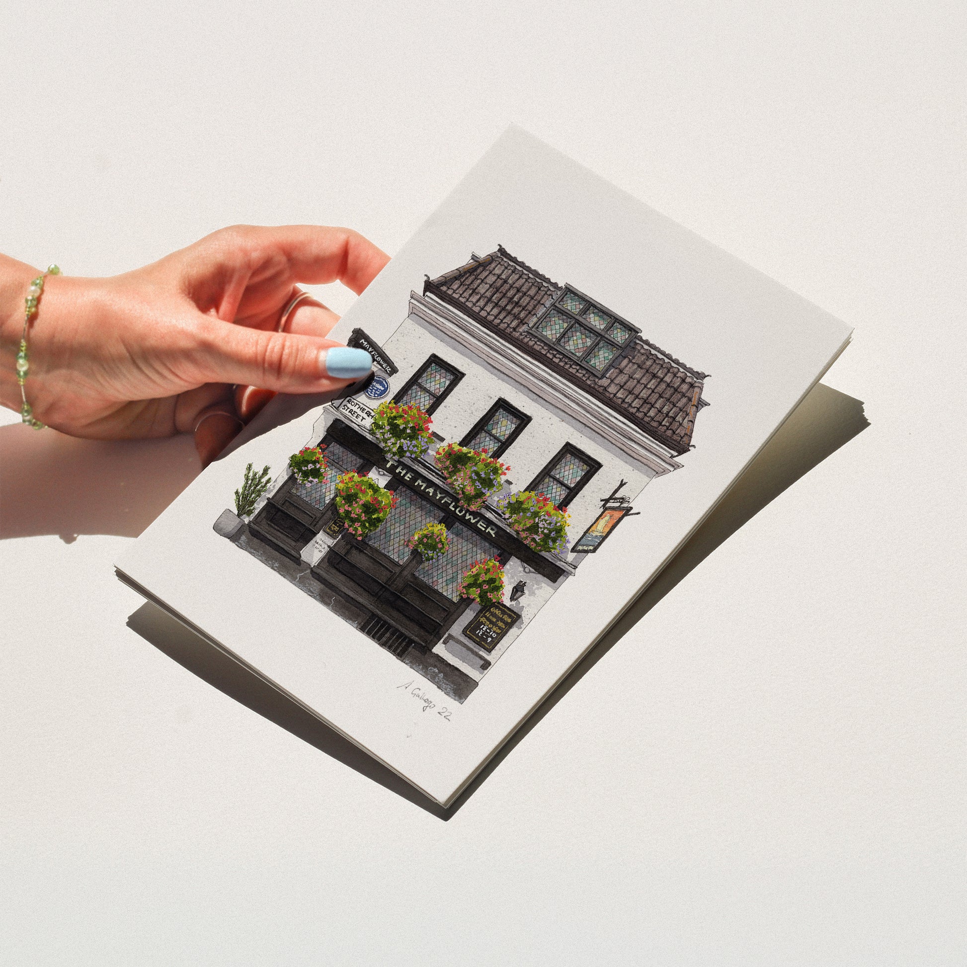 This is a Giclée Print of a watercolour illustration painted by me of the historic The Mayflower pub in Rotherhithe by the Thames in London, previously known as The Spread Eagle and Crown and originally The Shippe Inn. It is mentioned in a Sherlock Holmes book, "Murder at Lodore Falls" and also the book "The Poisoned Island"