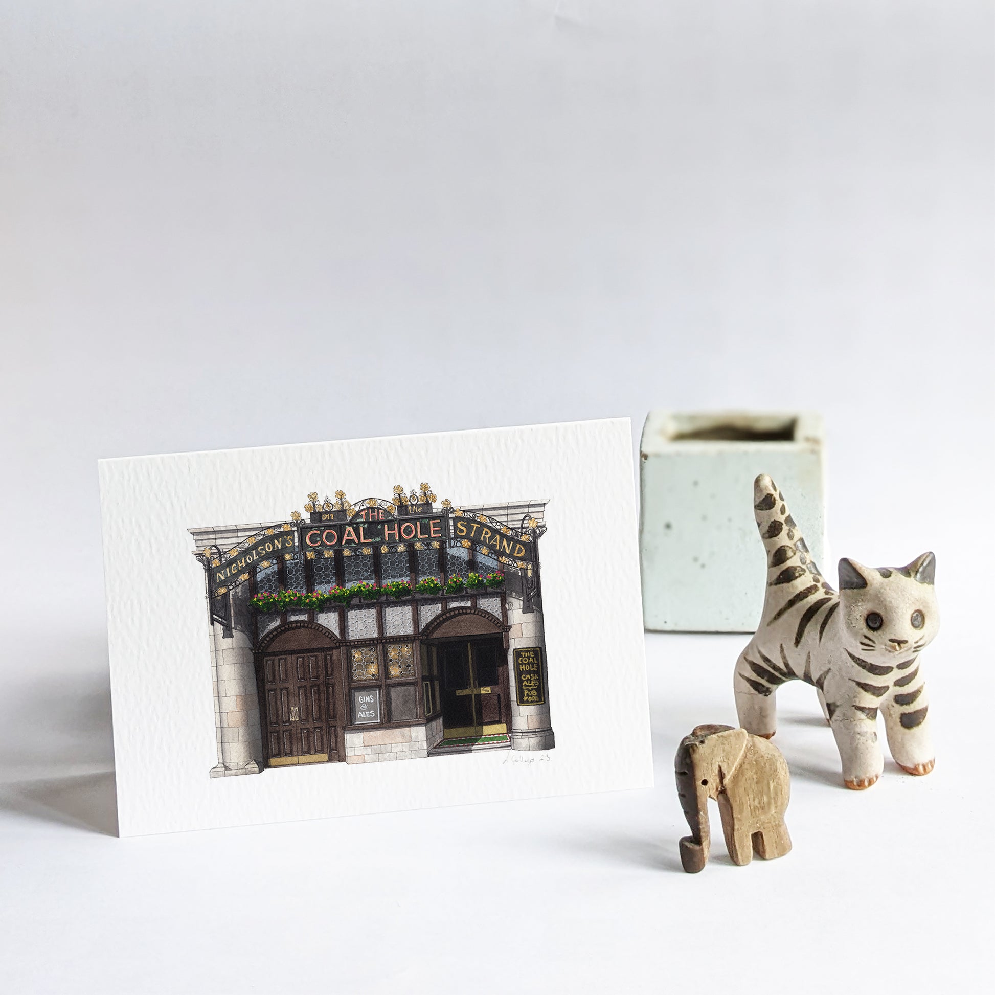 This is a greeting card of a watercolour illustration painted by me of the historic The Coal Hole in Strand, Central London.